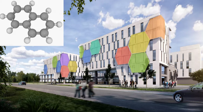 在建筑外观上,项目注重提炼企业生产产品为美观元素,将其与建筑外立面有机结合。