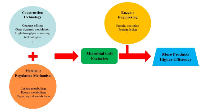 结合微生物强大且多样的生化反应网络,再对微生物的代谢路径进行重塑和工程化,可以将其改造为以低价值、可再生的资源为原料生产各类产品的细胞工厂,这是生物制造的核心环节。