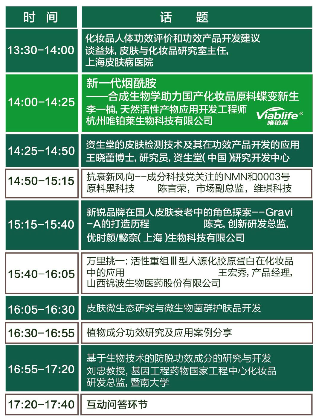 2021年起新条例的实施、监管政策的推行标志着中国化妆品市场正式进入”功效化妆品”的时代。技术的更新迭代,消费者的 需求进阶促使化妆品企业开始了在护肤,彩妆、洗护、个护等各类产品功效上的“角逐”。美白、抗衰、修复等功效产品成为市场 “新宠”。新规下化妆品企业如何兼顾安全与功效?工厂,原料商,检测机构如何赋能功效品牌?“可持续”风潮下,化妆品如何 实现技术创新和产品开发?如何通过产学研合作,实现前沿科技成果的转化?
