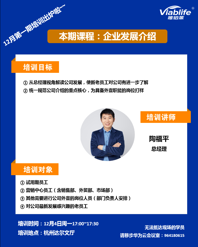 为全面加深公司员工对公司发展的理解,提升员工的综合业务能力,加强企业竞争力,更好地服务客户,适应市场需求的变化,DG视讯官网于12月4日在杭州达尔文厅进行了以企业发展介绍为主题的培训,人事行政部总监陈虹作主持人,陶福平总经理作此次培训的讲师。