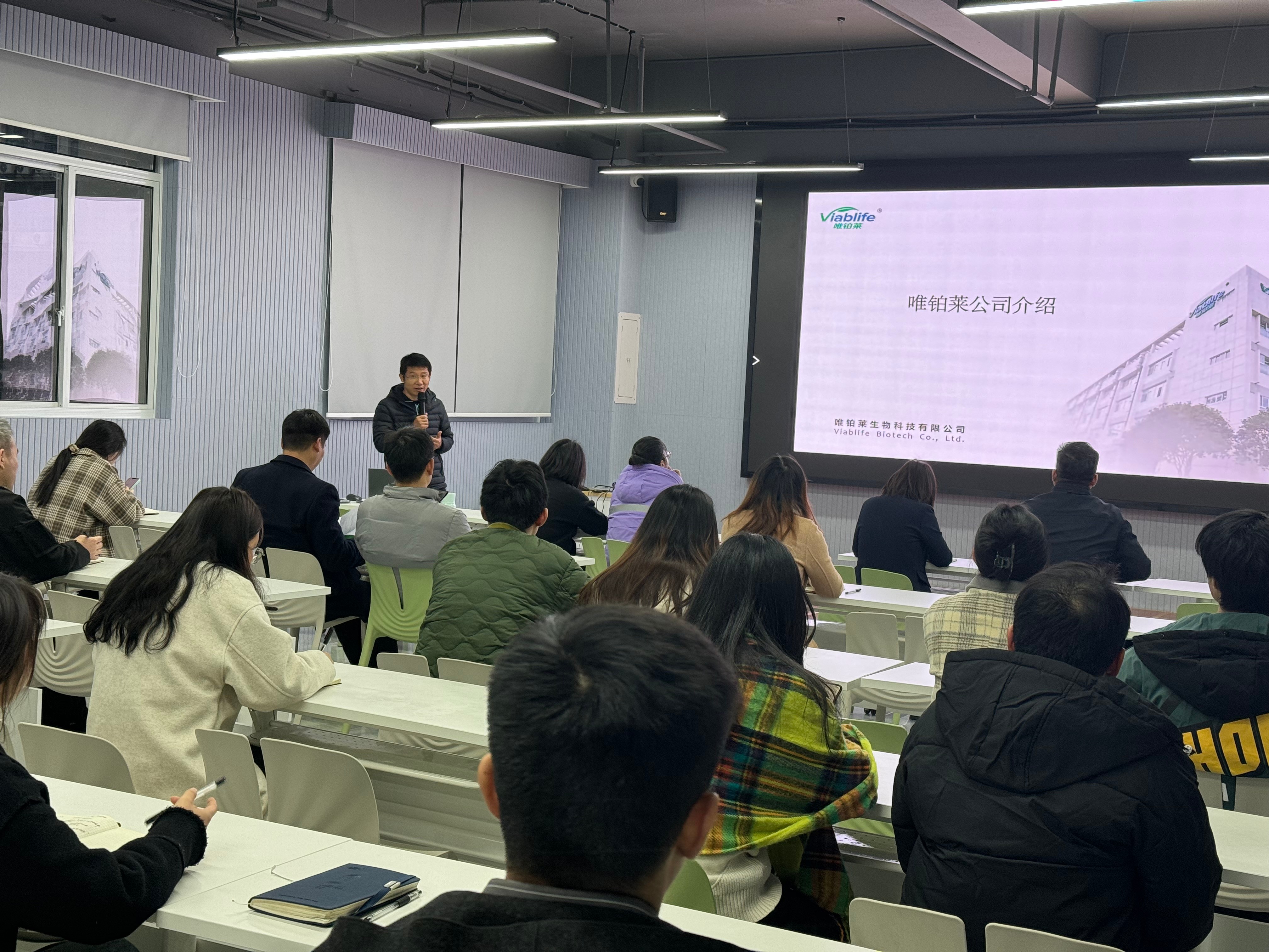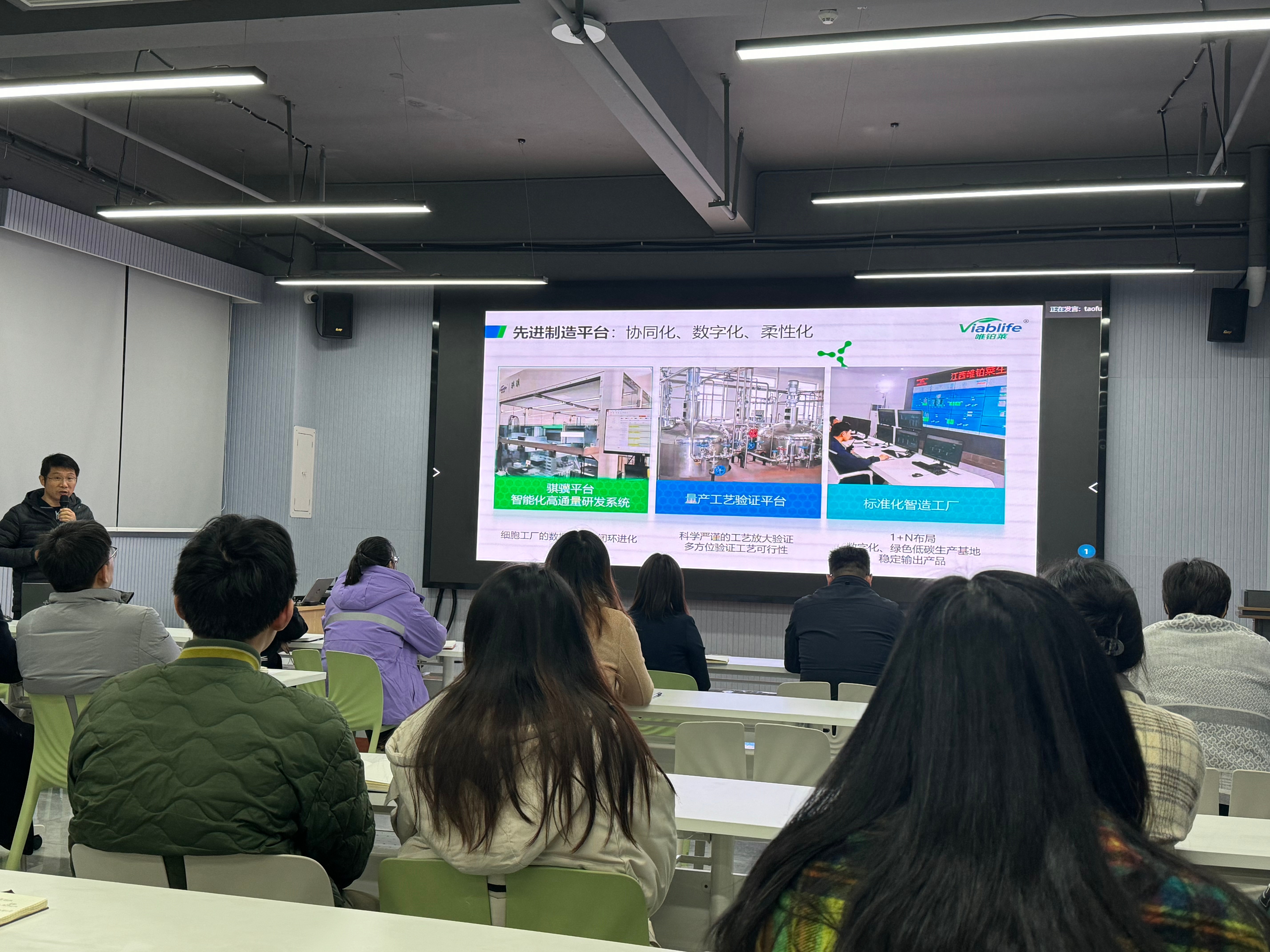 随后,陶总再次介绍了公司的两大业务方向生物大健康和生物新材料,以及产品的七大应用领域。从日用化妆品、生物医药、功能性食品三个方面简要阐述了DG视讯官网的产品,尤其是对公司的光刻胶树脂材料和新型天然色素作特别展示。