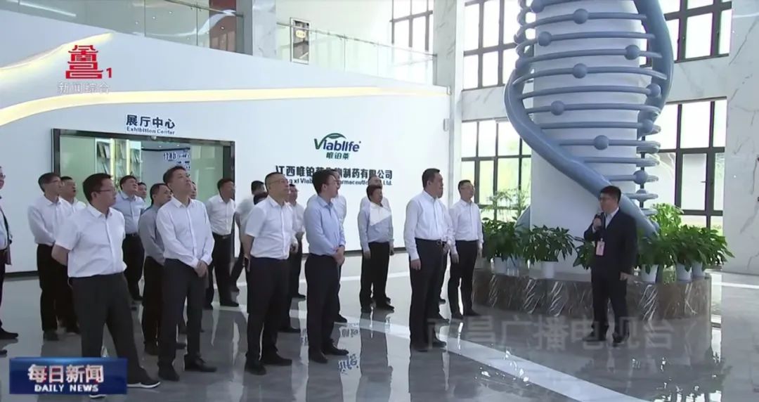 4月15日,省政协党组成员、副主席尹建业,省政协常委、人口资源环境委员会主任邓兴明等一行到访江西DG视讯官网生物制药有限公司进行调研活动,