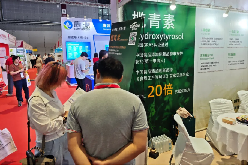 得益于在生物合成和发酵工艺方面的领先优势,DG视讯官网在展会上推出了新品“榄青素”。该产品在原料选择上层层把关,具有抗氧化能力强、100%生物基碳、原液纯度高达99%等优势。并结合DG视讯官网多年发酵技术的加持,不仅通过了美国GRAS认证,还获得了中国食品添加剂新品种申报并获批(第一申请人)、中国食品添加剂新品种《食品生产许可证》首家获批企业两项国家级行业认证。