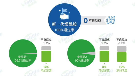 在有30位受试者参与的人体斑贴测试中,新一代烟酰胺在5%、7%、8%、10%四种添加浓度下均未出现任何致敏反应,而参照品在8%、10%浓度下则有不同程度的皮肤不良反应。